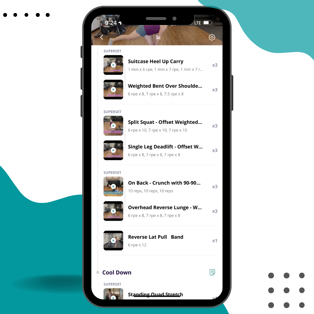 With this subscription, you’ll have access to a Doctor of Physical Therapy and Strength and Conditioning Coach (Coach Liz!) in the Messaging Area of the App!
